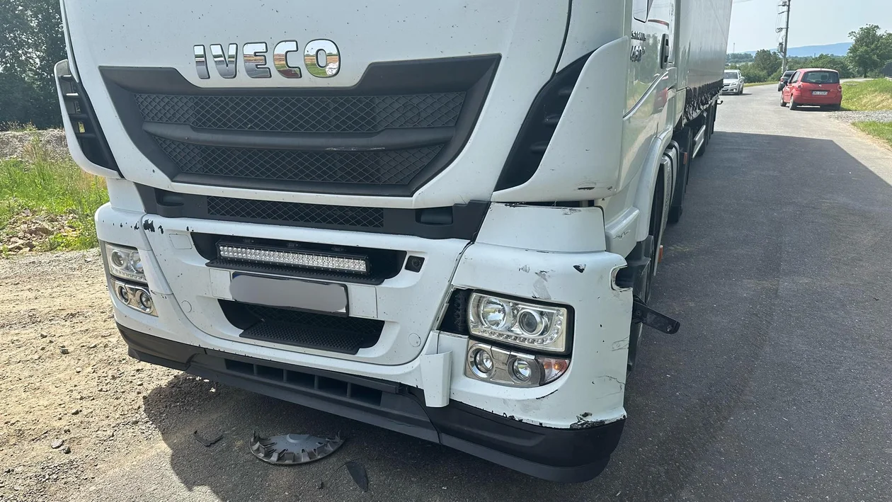 Kierujący citroenem ratując sytuację skręcił w prawo i uderzył w narożnik ciężarówki. Citroen został “wciągnięty” na przód ciężarówki i tak został przepchany przez kilka metrów. Na szczęście, nikomu nic się nie stało.
