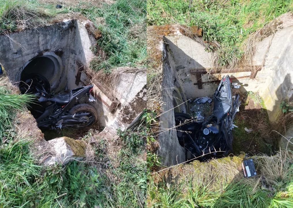 Ścinawka Dolna. 29-latek stracił panowanie nad motocyklem i uderzył w betonowy przepust [galeria]