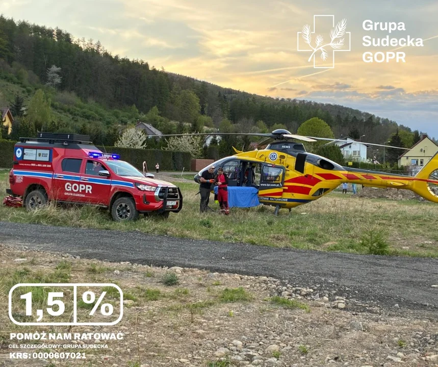 Poszkodowanego przekazano załodze Lotniczego Pogotowia Ratunkowego w Bielawie. Miejsce lądowania zabezpieczyli strażacy z Państwowej Straży Pożarnej w Dzierżoniowie. Dzięki sprawnej koordynacji służb poszkodowany szybko trafił pod opiekę medyczną.