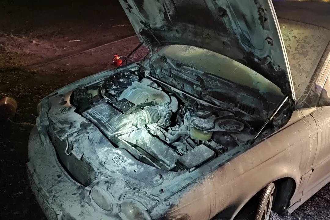Przybyli jako pierwsi na miejsce zdarzenia strażacy zauważyli palącą się komorę silnika pojazdu. Wcześniej pożar został częściowo ugaszony przez postronne osoby przy pomocy gaśnic proszkowych.