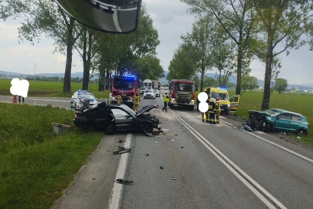 Krajowa ósemka. W niedzielę, 26 maja, około godz. 13:30 na krajowej ósemce w Szalejowie Dolnym 20-latek z powiatu wrocławskiego, kierujący samochodem marki Volkswagen, jadąc od strony Polanicy-Zdrój w kierunku Kłodzka, skręcając do Ruszyc, nie ustąpił pierwszeństwa przejazdu prawidłowo jadącemu samochodowi marki BMW, w wyniku czego doszło do zderzenia czołowego.