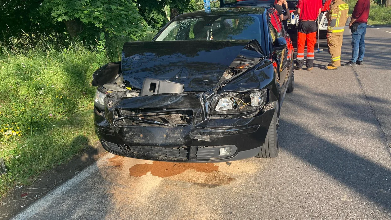 Niestety, kierujący Volvo, który jechał za nissanem nie zdarzył się bezpiecznie zatrzymać i wjechał w tył nissana