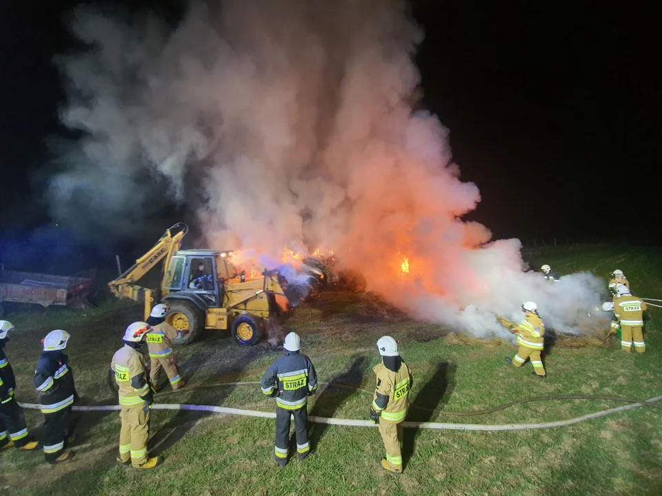 Trzebieszowice. W nocy z poniedziałku na wtorek, około godz. 1:40, do stanowiska kierowania komendanta powiatowego PSP w Kłodzku wpłynęło zgłoszenie o pożarze balotów słomy. Po przybyciu na miejsce jednostek ratowniczo-gaśniczych oraz rozpoznaniu ustalono, że doszło do spłonęło ok. 60 balotów słomy.