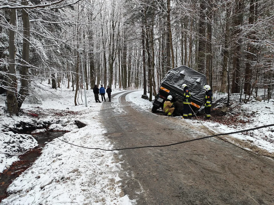 Gmina Stronie Śląskie. Służby ratunkowe otrzymały zgłoszenie o zdarzeniu około godziny 7:45. Jak przekazał Bartosz Zdęga, oficer prasowy Komendy Powiatowej Państwowej Straży Pożarnej w Kłodzku, do wyciągnięcia wojskowego pojazdu z rowu wykorzystano specjalistyczny samochód SCRd Mega City Volvo z Ochotniczej Straży Pożarnej w Polanicy-Zdroju.