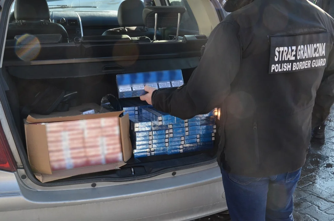 Podczas przeszukania pojazdu, którym po towar przyjechali Ukraińcy, funkcjonariusze ujawnili 1001 paczek papierosów bez znaków skarbowych akcyzy o wartości 15 tysięcy złotych.