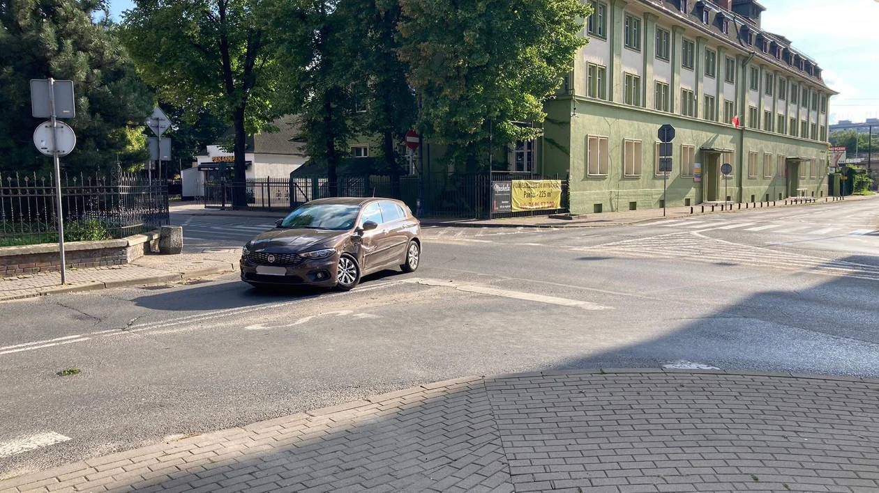 Kierująca fordem jadąc ulicą Grunwaldzka nie zatrzymała się przed znakiem STOP, nie ustąpiła pierwszeństwa kierującemu fiatem, który jechał ulicą Łużycką.