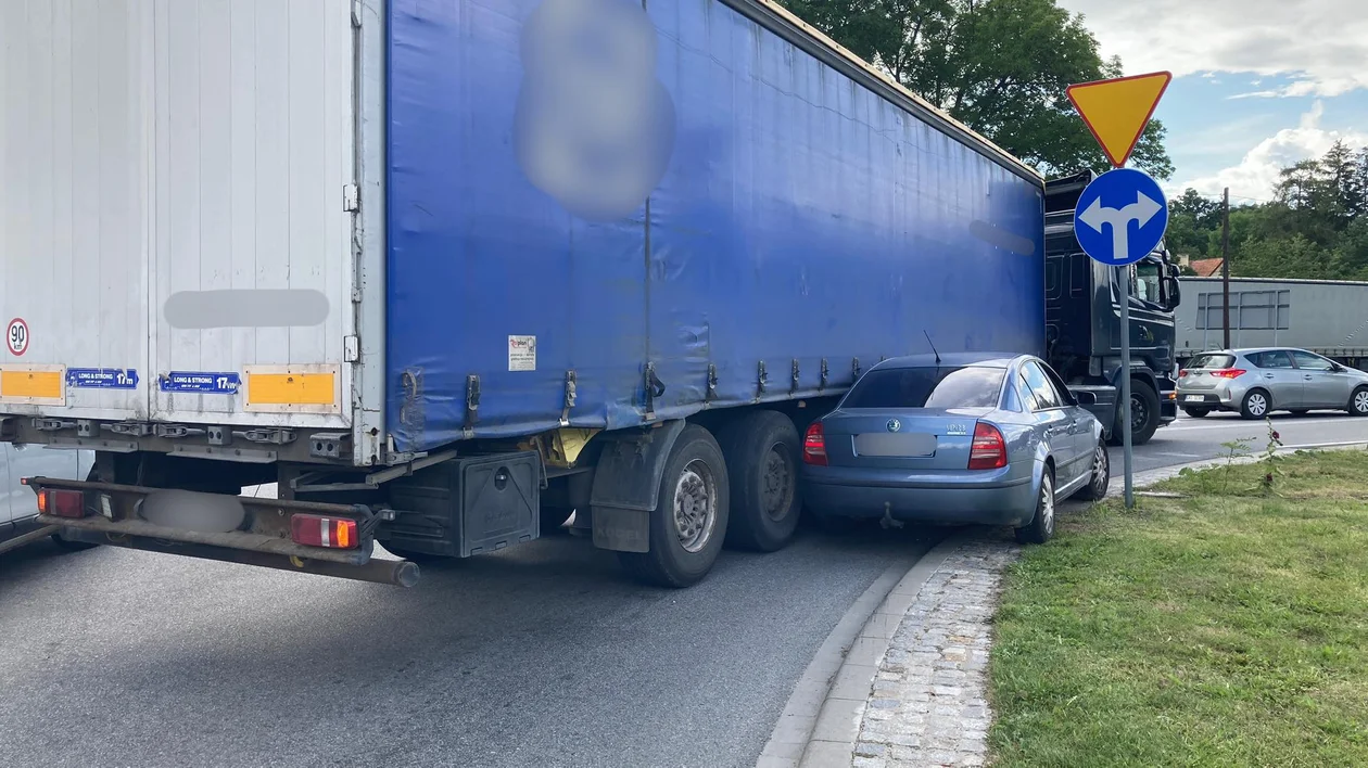 Żelazno. W poniedziałek, około godz. 16:40, na skrzyżowaniu drogi krajowej nr 33 z drogą wojewódzką 392 doszło do kolizji ciężarówki i skody.