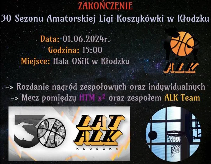 W Kłodzku natomiast (hala OSiR-u) odbędzie się zakończenie 30. edycji rozgrywek ALK. W Programie wręczenie pucharów i medali oraz mecz pokazowy.