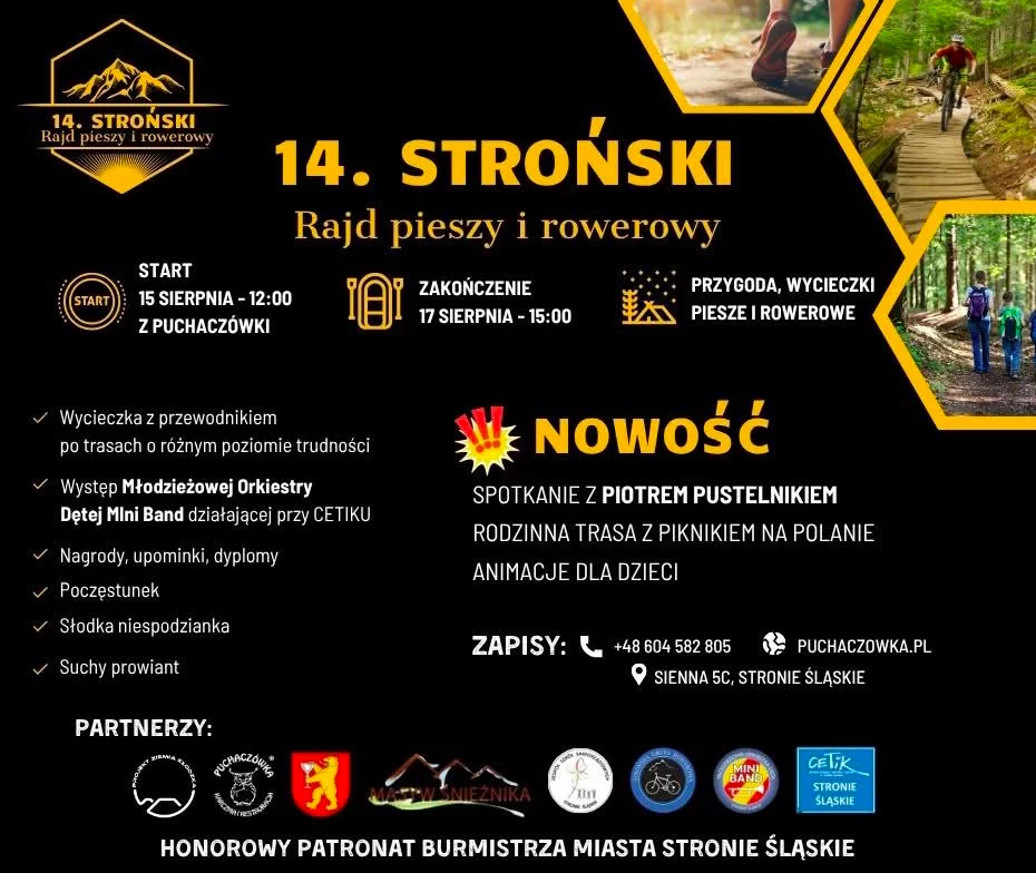 14. Stróński Rajd Pieszy i Rowerowy to doskonała okazja do aktywnego spędzenia czasu w otoczeniu pięknej przyrody, spotkania ludzi o podobnych pasjach oraz wzięcia udziału w wydarzeniu, które łączy sport, rekreację i rodzinną zabawę.