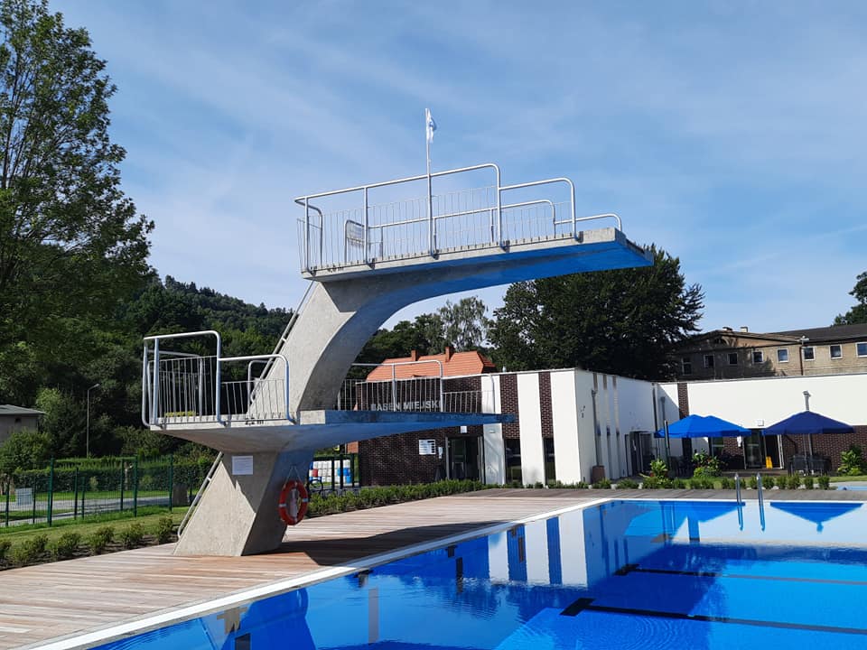 Autor: Fot. Basen Miejski Nowa Ruda | Opis: Nowa Ruda: Wieża do skoków cieszy się dużym zainteresowaniem.