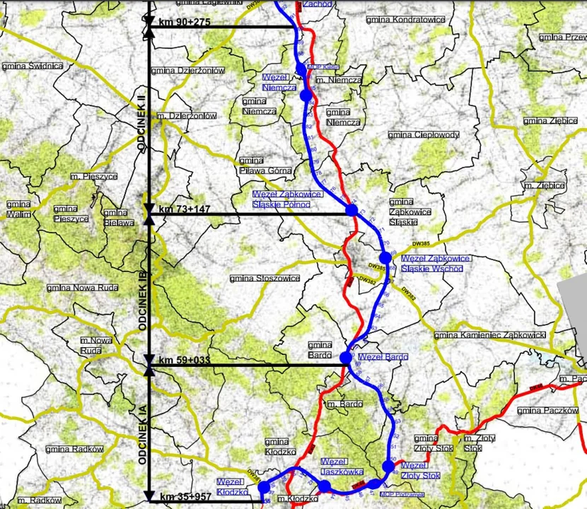 Główna Dyrekcja Dróg Krajowych i Autostrad informuje, że kontynuacja prac projektowych dla pododcinka Kłodzko - Bardo będzie możliwa po analizie połączenia go z planowaną obwodnicą Złotego Stoku w ciągu DK46.