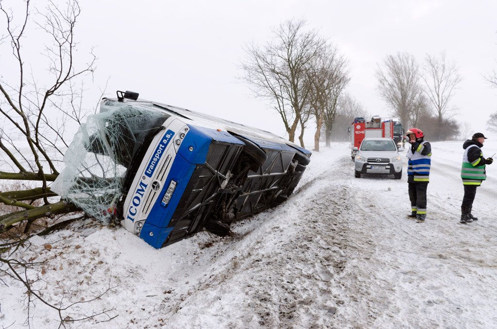 Wypadek na drodze krajowej 33 - autobus wpadł do rowu.