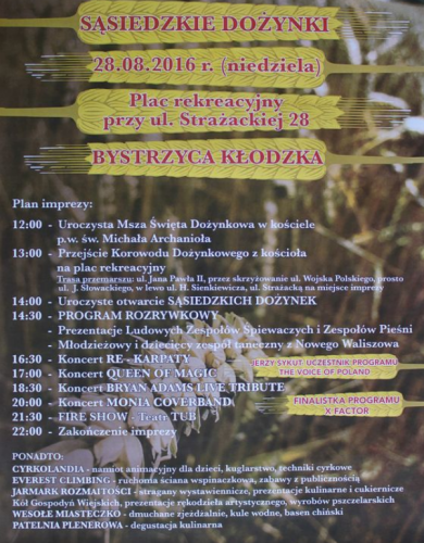 Wiadomościprogram tegorocznych „Sąsiedzkich Dożynek”, które będą świętem plonów rolników i osób pracujących na rzecz rolnictwa z gminy bystrzyckie