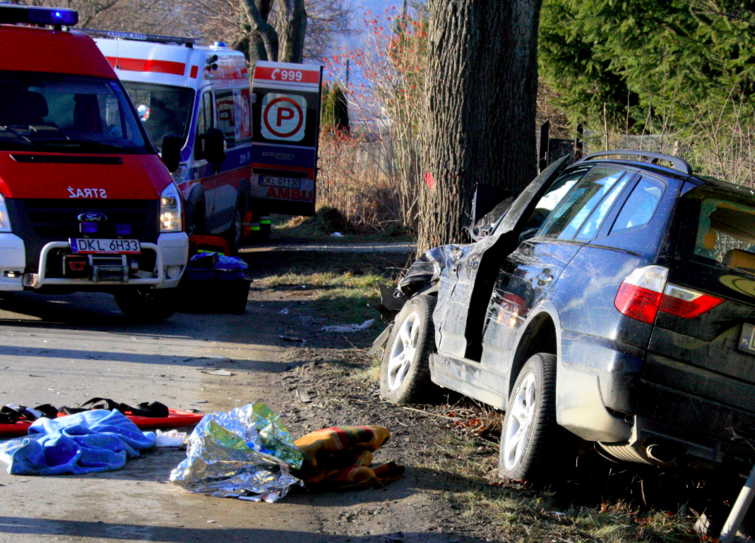 Dolnik. Wypadek wydarzył się w piątek, 3 grudnia, ok. godz. 12.00. Osobowe BMW (rejestracja z powiatu kłodzkiego) jechało główną drogą w kierunku Międzylesia. Ciężarówka wjeżdżała z drogi podporządkowanej, którą dowozi się materiały do budowanego zbiornika retencyjnego w Boboszowie. Kierowca osobowego auta chcąc uniknąć zderzenia z wjeżdżającą ciężarówką odbił w prawo i uderzył w przydrożne drzewo.