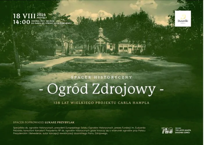 Dusznicki Park Zdrojowy kończy w tym roku 255 lat. Projekt, który przyniósł mu europejska sławę powstał 138 lat temu. Niebawem rozpoczną się prace, które przywrócą mu dawną świetność. O tym dlaczego był perełką europejskiego ogrodnictwa i wzorem dla adeptów sztuki ogrodnictwa z całej Europy opowie Łukasz Przybylak, autor koncepcji rewaloryzacji dusznickiego parku, specjalista ds. ogrodów historycznych, prezydent Europejskiego Szlaku Ogrodów Historycznych oraz prezes Fundacji im. Eduarda Petzolda. Przybylak był także kierownikiem działu ogrodowego przy pałacu królewskim w Wilanowie, gdzie odpowiadał za bieżącą pielęgnację i rewaloryzację ogrodu. Obecnie jest konsultantem Kancelarii Prezydenta RP ds. ogrodów historycznych, gdzie troszczy się o wizerunek ogrodów przy Pałacu Prezydenckim i Belwederze.