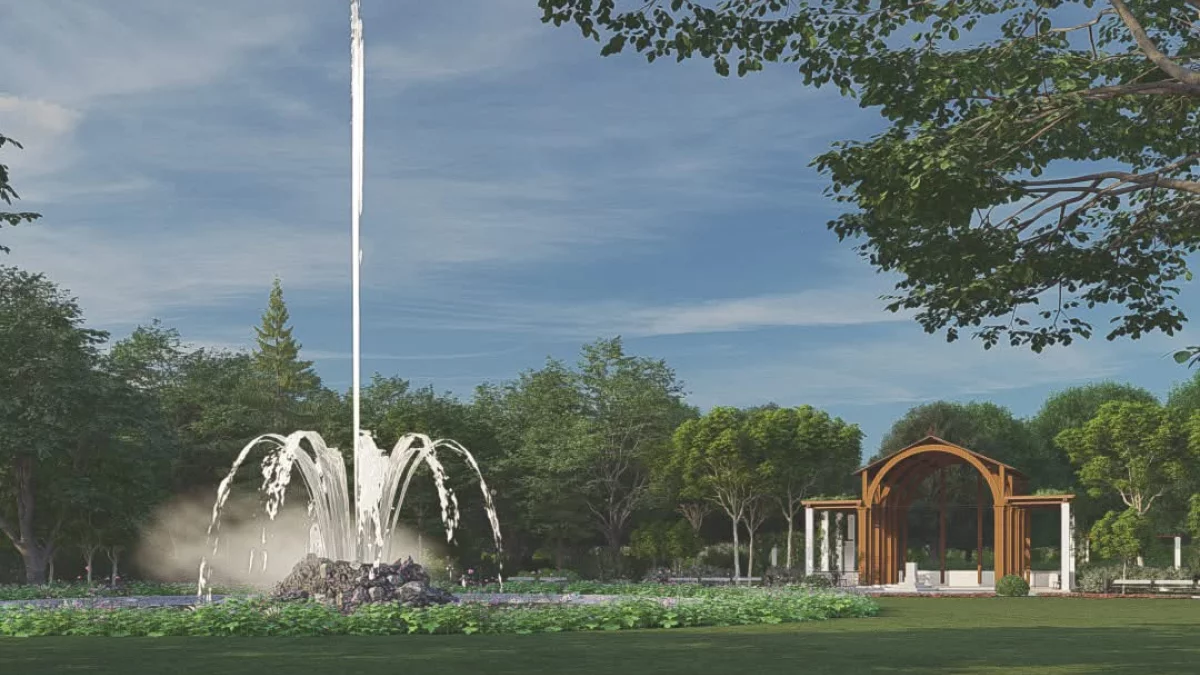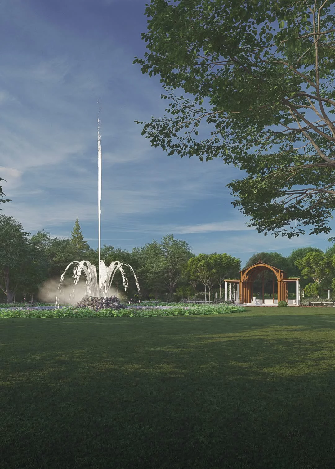 Ogród angielski, zaplanowany jako odrębna strefa parku, ma wyróżniać się swobodnym, naturalnym układem oraz atmosferą ciszy i bliskości natury. Centralnym punktem przestrzeni będzie fontanna – nie tylko element dekoracyjny, ale także miejsce organizacji wydarzeń i spotkań.