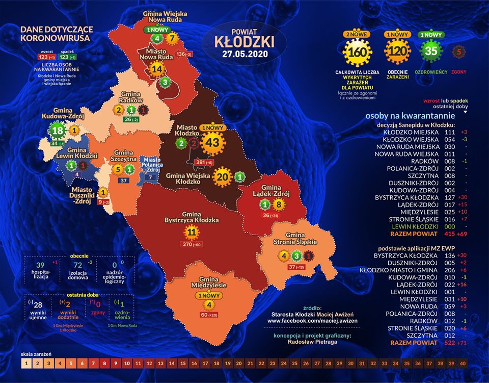 Środa przyniosła po raz kolejny złe wieści. Odnotowano nowe przypadki zachorowań. Zachorował mężczyzna z gminy Międzylesie i jedna kobieta w Kłodzku. Jest tez dobra wiadomość. W naszym powiecie jest kolejny ozdrowieniec. To kobieta z gminy Nowa Ruda.