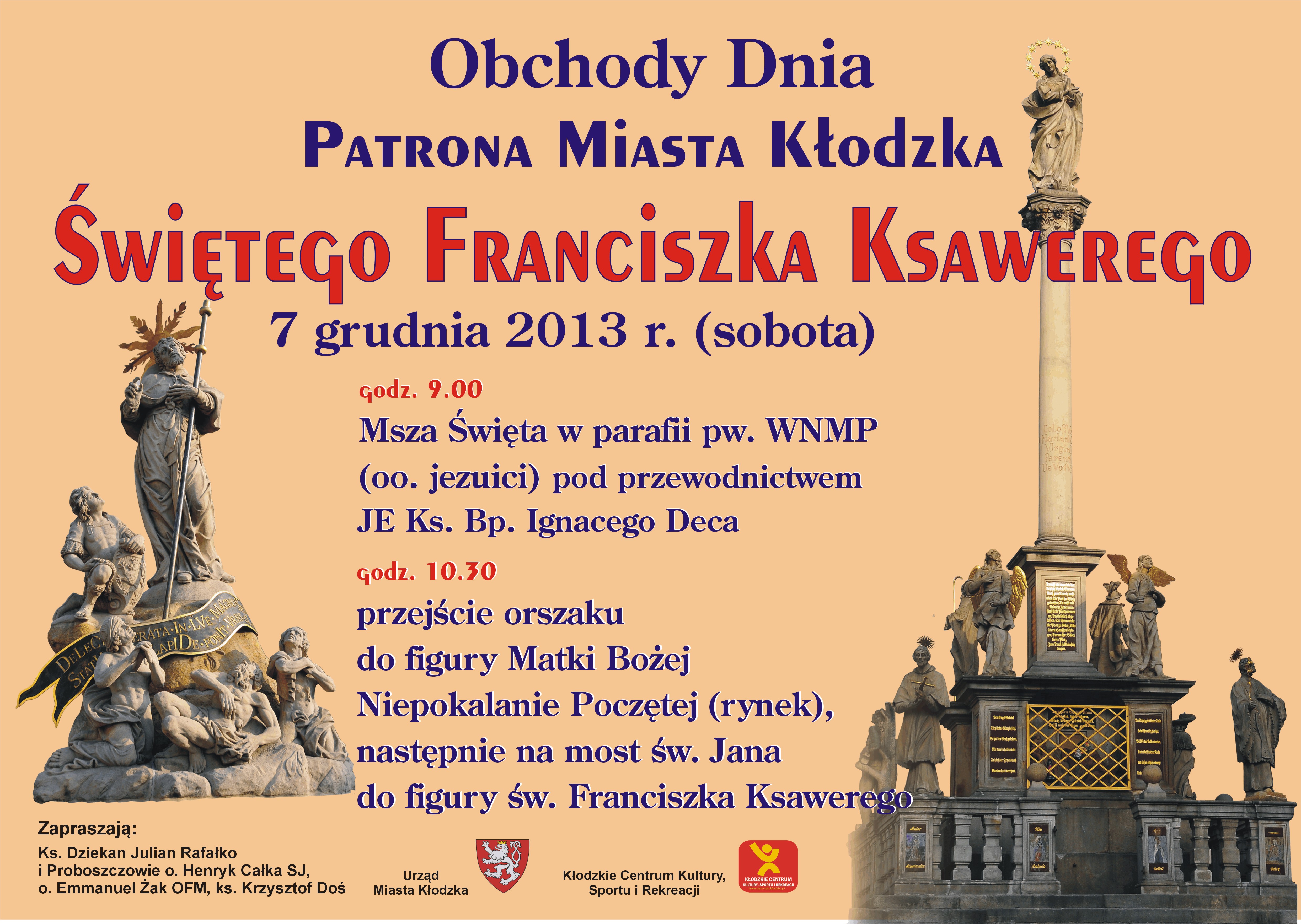 Obchody Dnia Patrona Miasta Kłodzka Świętego Franciszka Ksawerego odbędą się dnia 7 grudnia 2013 r.