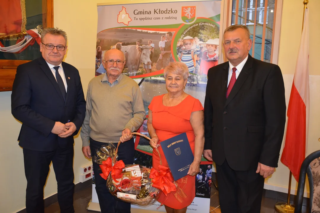 W minioną środę mieszkańcy gminy Kłodzko, którzy przeżyli w związku małżeńskim co najmniej 50 i 60 lat, spotkali z zastępcą wójta i przewodniczącym rady gminy. Wśród nich znaleźli się państwo Czesława i Stefan Widachowie z Podtynia, którzy obchodzili swoją 60. rocznicę ślubu. Pozostali jubilaci, którzy obchodzili złote gody: