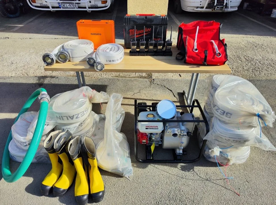 Dzięki temu zakupiono: wyważacz do drzwi Holmatro, cyfrowe radiotelefony nasobne Motorola, motopompę szlamową Honda, węże ssawne, węże tłoczne, linki ratownicze, buty gumowe, wiertarko-wkrętarkę udarową Milwaukee, szlifierkę kątową Milwaukee oraz kurtki przeciwdeszczowe