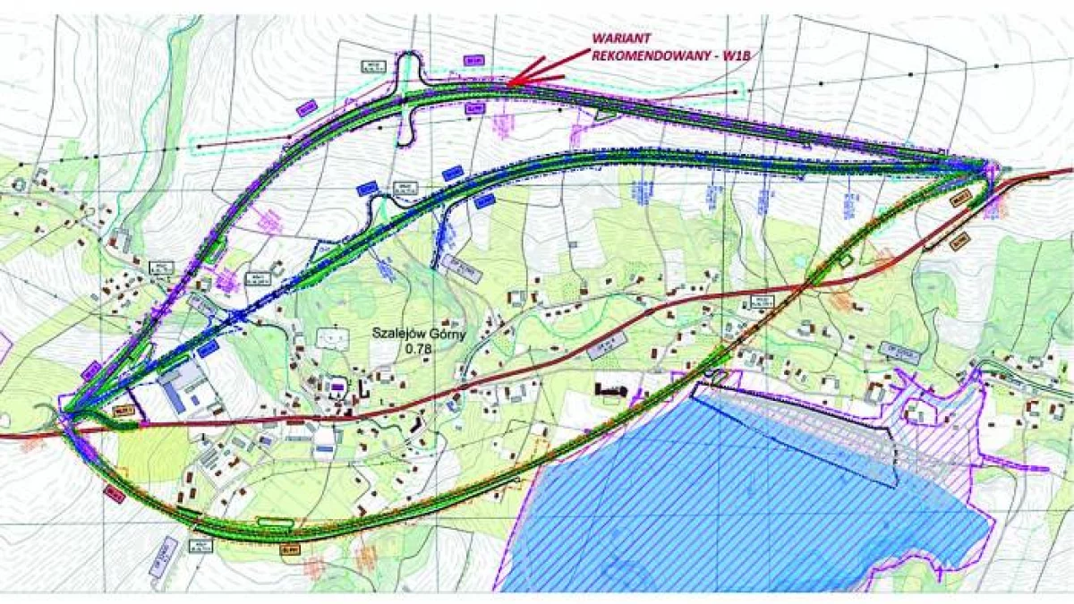 Gmina Kłodzko. Wariant ten zakłada budowę trasy o długości 3,2 km. Jej początek przewidziano przy rondzie projektowanym w ramach równolegle prowadzonych prac nad rozbudową DK8 na odcinku Szczytna–Kłodzko. Inwestycja rozpocznie się w pobliżu zakładu produkcyjnego, następnie ominie Szalejów Górny od północy i zakończy się w miejscu włączenia w istniejący łuk drogi krajowej nr 8.