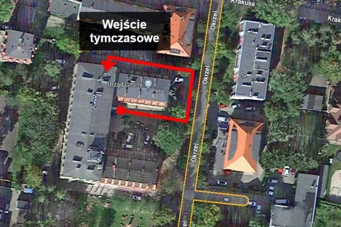 Niestety, każdy remont wiąże się z utrudnieniami i tak jest w tym przypadku. Przypominamy, iż główne wejście do urzędu jest obecnie zamknięte, natomiast udostępnione zostało wejście boczne. Na załączonych zdjęciach przedstawiamy, jak do nas trafić