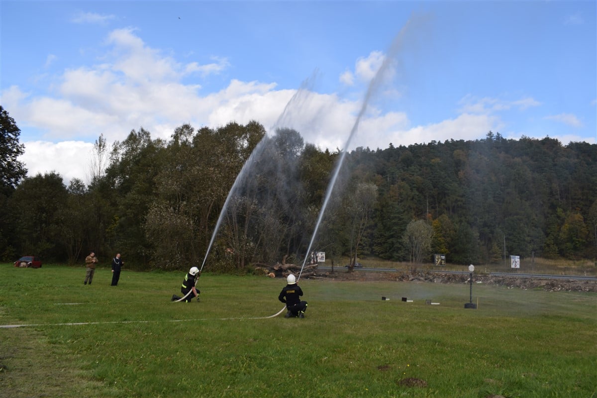 Każda z jednostek spróbowała swoich sił w zmaganiach bojowych polegających na rozwinięciu linii ogniowej, pospinaniu węży w linii, przewróceniu słupków i obróceniu tarczy o 180 stopni | Fot. Gmina Kłodzko