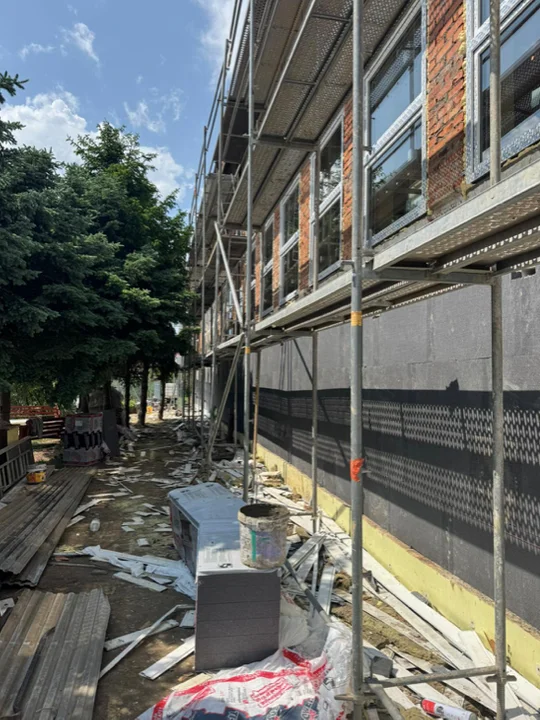 W Jaszkowej Dolnej rozpoczęła się długo wyczekiwana inwestycja – termomodernizacja budynku Szkoły Podstawowej. Na miejscu już pojawiły się rusztowania, a dostarczone materiały budowlane to znak, że prace ruszyły pełną parą.