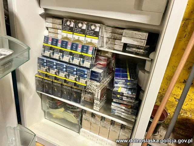 Powiat Kłodzki. 51-letni mieszkaniec naszego powiatu przechowywał część kontrabandy nawet w lodówce. W jego mieszkaniu ujawniono ponad 50 kg krajanki tytoniowej oraz blisko 35 tys. sztuk papierosów bez wymaganych znaków skarbowych. Policjanci ustalili również, że mężczyzna zajmował się sprzedażą nielegalnych wyrobów.