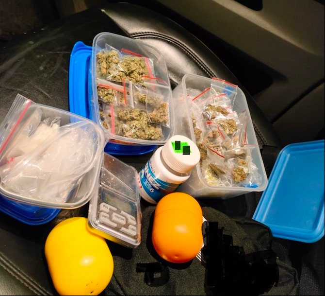 Na tylnym siedzeniu w torbie po laptopie znaleźli plastikowe pojemniki wypełnione białym proszkiem i suszem roślinnym. Pomiędzy tymi środkami znajdowała się karta płatnicza kierującego pojazdem oraz waga elektroniczna. Mężczyzna został zatrzymany i pobrano mu krew do badań. Wstępna analiza zabezpieczonych środków wykazała, że jest to amfetamina i marihuana. Ponadto okazało się, że 25-latek kierował samochodem bez prawa jazdy. Mężczyzna był już karany za przestępczość narkotykową.