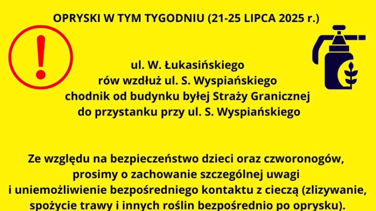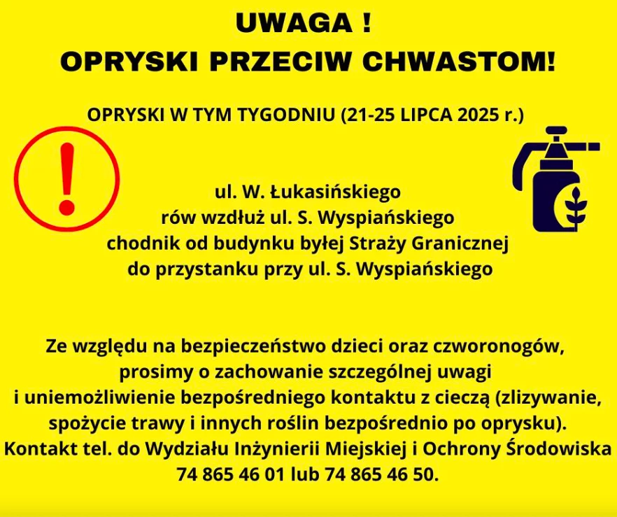 Ze względów bezpieczeństwa Urząd Miasta Kłodzka apeluje do mieszkańców o zachowanie szczególnej ostrożności. Zaleca się unikanie bezpośredniego kontaktu z roślinami po opryskach — zarówno przez dzieci, jak i zwierzęta domowe. Grozi to nie tylko podrażnieniami, ale także poważnymi zatruciami.