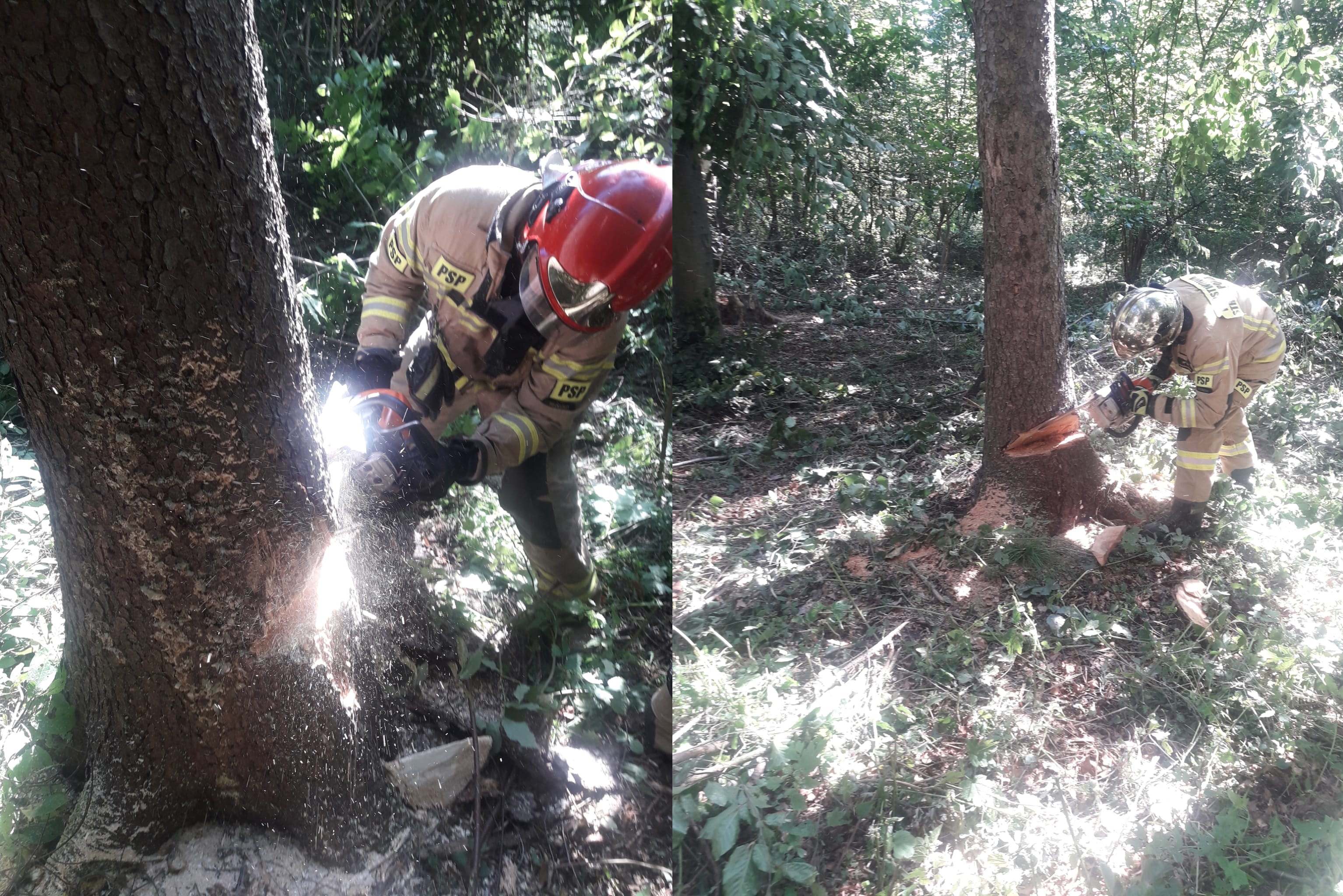 Kłodzko. Dzięki uprzejmości właściciela prywatnego lasu strażacy mieli możliwość przeprowadzenia ćwiczeń praktycznych. Wcześniej wzięli udział w zajęciach teoretycznych z zakresu zasad BHP oraz zagrożeń mogących pojawić się podczas prac związanych z wycinką drzew.