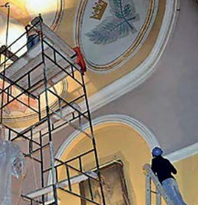 rekonstrukcja tynków wraz z pracami konserwatorskimi kamieniarki południowo-wschodniego ryzalitu II i III kondygnacji elewacji