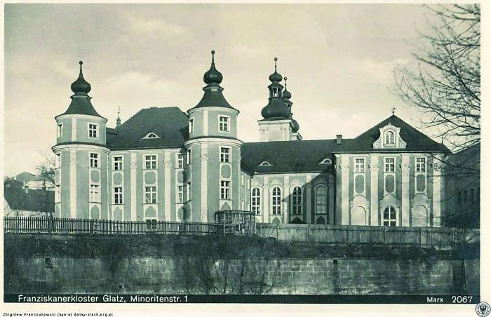 Klasztor franciszkanów z kościołem MB Różańcowej. Zdjęcie z lat 1930-1935.