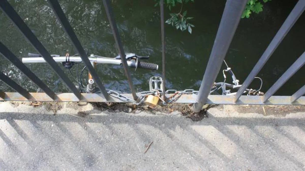 Kłodzko. Szara zdezelowana rama od roweru, bez kół, wsiała w piątek, 25 lipca, pod mostem nad kanałem Młynówka w Kłodzku. Była uwiązana łańcuchem i zabezpieczona kłódką.