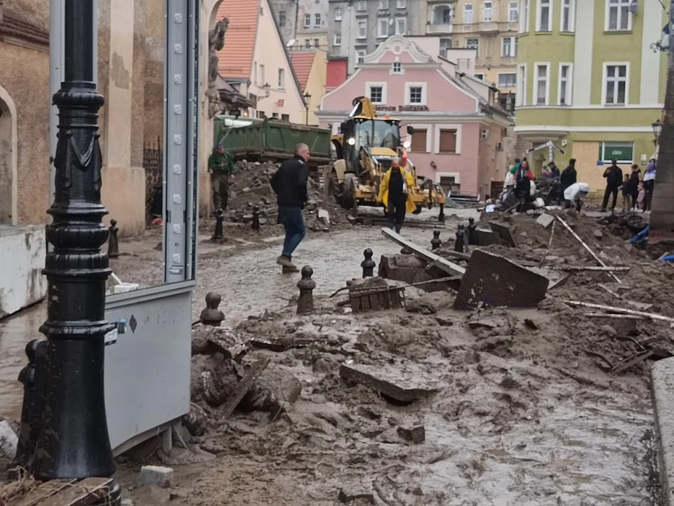 szędzie widać ludzi usuwających skutki powodzi. Co chwilę słychać i widać przejeżdżające na sygnale pojazdy służb. To widok z ulic Kłodzka, dziś po godzinie 17:00.