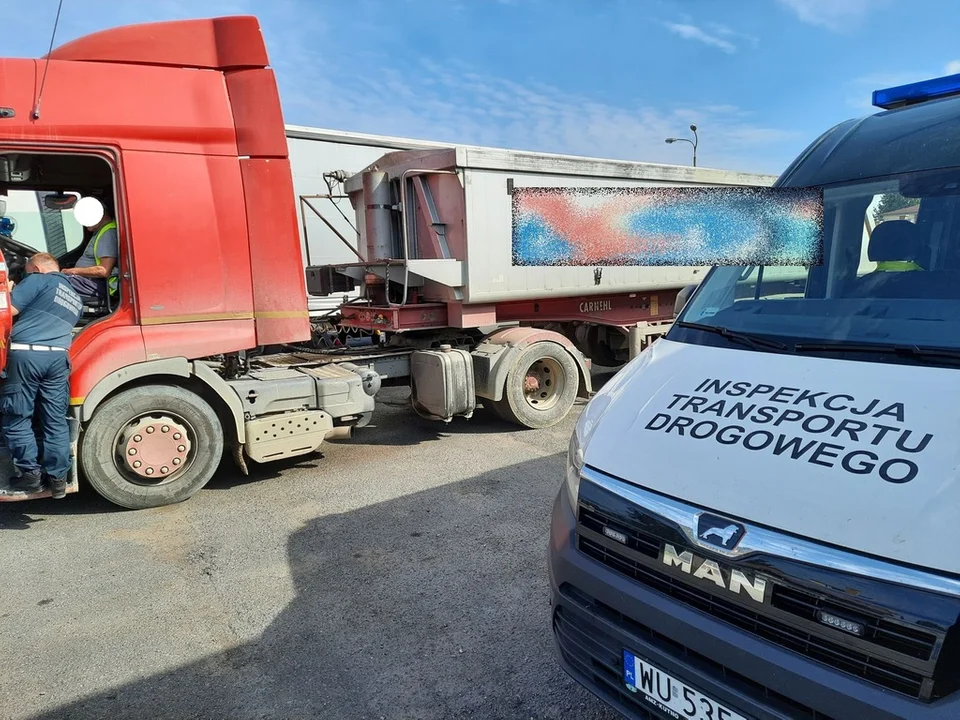W ciągniku siodłowym wykryto m.in. brak hamowania prawego tylnego koła spowodowany wyciekiem z mostu i zaolejeniem hamulca oraz przetarcie i poważną nieszczelność przewodu hamulcowego kół przedniej osi, pęknięcia podstawy siodła oraz brak plomby na impulsatorze tachografu - co równa się z brakiem legalizacji tegoż