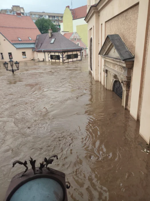 Klasztor i kościół Franciszkanów w Kłodzku został zalany. - Woda sięgała pod sufit parteru klasztoru, w kościele woda jest na wysokości ambony, z budynku parafialnego widać tylko dach, mur klasztorny został zniszczony przez nurt rzeki. Woda więc osiągnęła prawie poziom, który był podczas powodzi tysiąclecia w 1997 roku - mówią kłodzccy Franciszkanie.
