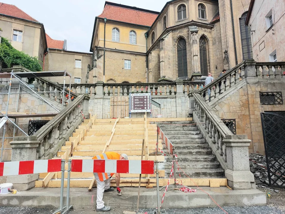 Kłodzko. Cały remontowany odcinek wyłączony jest z częściowo z ruchu, możliwe jest jedynie przejście od / do Trasy podziemnej schodami w stronę kościoła. Docelowo chodnik zostanie wyłożony płytami i kostką granitową, a schody zostaną wyłożone piaskowcem.