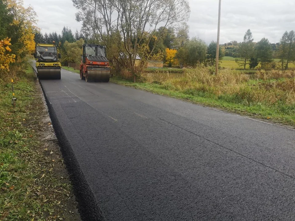 Droga po ułożeniu ostatniej warstwy asfaltu jest już przejezdna. Do zakończenia prac związanych z tą inwestycją pozostały jeszcze do zrobienia pobocza, przyczółki na przepustach oraz zajazdy