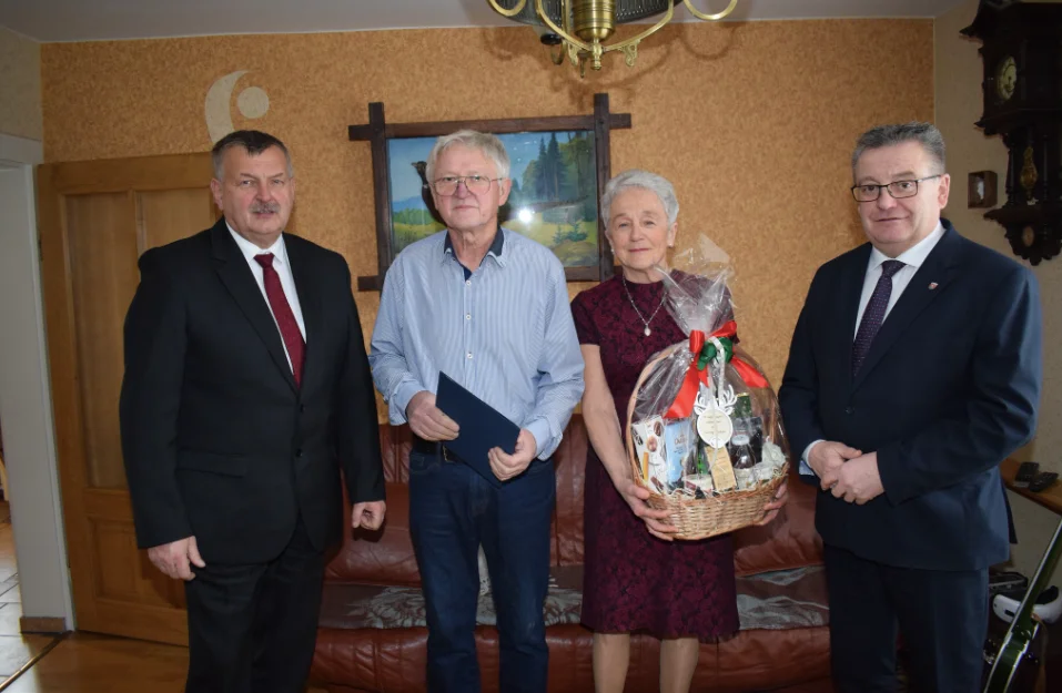 W grudniu 50. rocznicę zawarcia związku małżeńskiego obchodzili państwo Krystyna i Wacław Pieściukowie z Krosnowic. Z tej okazji tradycyjnie z gratulacjami i koszem słodkości dostojnych jubilatów odwiedzili wójt Zbigniew Tur i przewodniczący Rady Gminy Ryszard Jastrzębski, życząc kolejnych wspólnych lat w zdrowiu, spokoju i wzajemnej miłości.