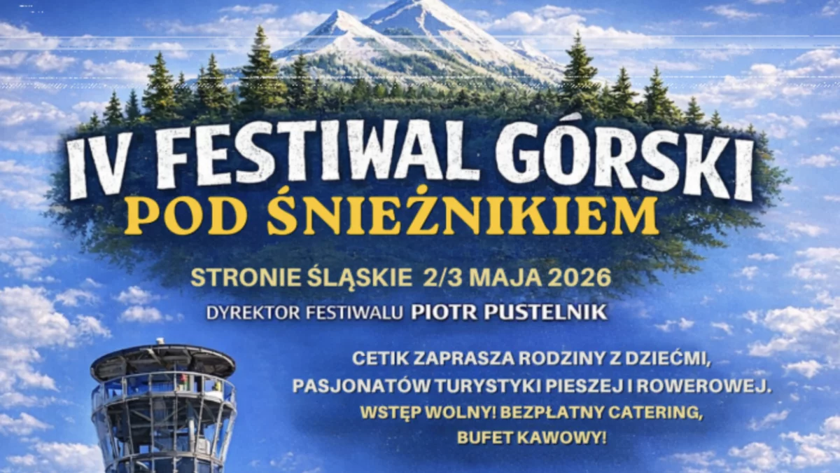 Majówka 2026. To czwarta edycja Mini Festiwalu Górskiego pod Śnieżnikiem, który z roku na rok przyciąga coraz większą publiczność. Wydarzenie odbędzie się w Centrum Edukacji, Turystyki i Kultury w Stroniu Śląskim (CETiK), w sali widowiskowej, która na dwa dni stanie się przestrzenią inspirujących spotkań i opowieści z różnych zakątków świata.