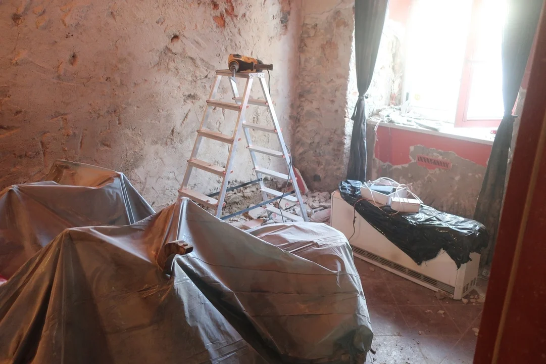 Po uzgodnieniach z przedstawicielami Gminy Lądek-Zdrój (która jest właścicielem lokalu), doszliśmy do wniosku, że my zajmiemy się remontem w środku lokalu, miasto natomiast weźmie na siebie naprawę drzwi i stolarki okiennej, remont fasady natomiast ciąży na wspólnocie mieszkaniowej.