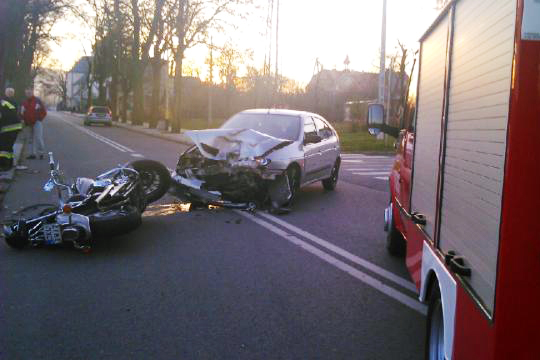 37-letniego kierowcę motocykla marki Yamaha przewieziono do Specjalistycznego Centrum Medycznego w Polanicy-Zdroju po tym, jak zderzył się z samochodem Renault Megane. Do wypadku doszło we wtorek, 12 listopada, około 15.45, w Szczytnej, na skrzyżowaniu ulic Kościelnej i Słonecznej.