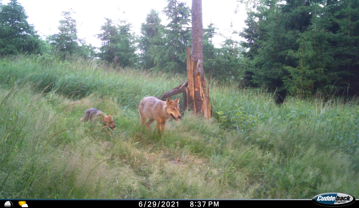 Nadleśnictwo Jugów. Nie od dzisiaj wiadomo, że w naszych lasach są wilki. W 2019 roku zrobiło się o nich głośno, kiedy w powiecie kłodzkim zagryzły 26 danieli. Wilków w Polsce przybyło, bo od wielu lat są pod ochroną. Naukowcy z Państwowej Akademii Nauk uważają, szkody, które powodują nie upoważniają do drastycznych zmian w podejściu do ich ochrony, a odstrzał nie jest skutecznym narzędziem by te szkody ograniczyć.