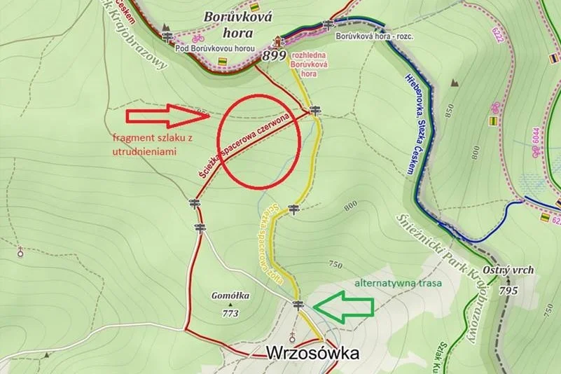 Nadleśnictwo Lądek Zdrój informuje, że związku z rozpoczęciem prac z zakresu użytkowania lasu w leśnictwie Wojtówka, wystąpią tymczasowe utrudnienia w ruchu turystycznym na szlaku czerwonym turystycznym pieszym - odcinek 300 m pod „Borówkową Górą”.