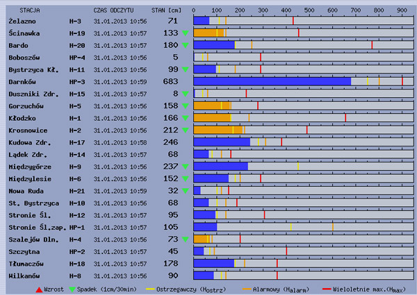Obecnie poziom wody w rzekach maleje lub nie zmienia się. W żadnym z punktów kontrolnych LSOP nie ma przekroczonego stanu alarmowego. W Ścinawce, Gorzuchowie, Kłodzku, Krosnowicach oraz Szalejewie Dolnym przekroczone są stany ostrzegawcze.
