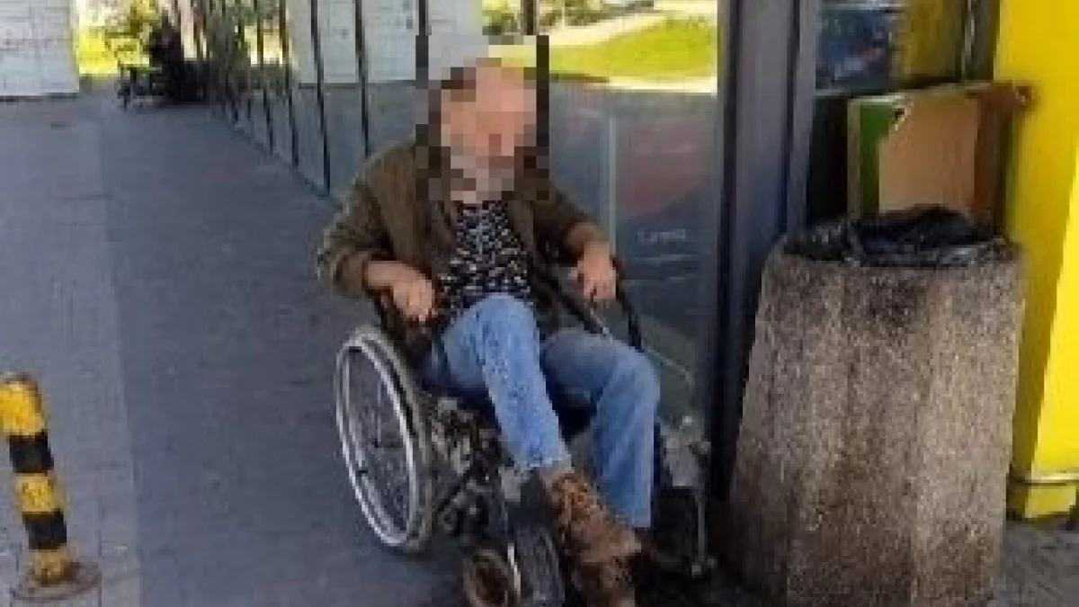Nowa Ruda. Jak jest pijany pojawia się agresja słowna. Wyzywa nas od najgorszych - skarżą się pracownicy sklepu. Mężczyzna ma niesprawne ręce. Żeby poruszać się wózkiem odpycha się od ziemi nogami. Dlatego jeździ tyłem.