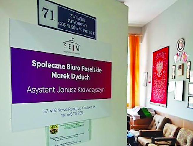 Nowa Ruda. Swoje biuro poselskie Dyduch otworzył w maju. Mieści się ono w słupieckim Centrum Turystyczno-Sportowym. Mieszkańcy przyjmowani są dwa razy w tygodniu: we wtorek i w czwartek od godz. 11:00 do 12:30. Asystentem społecznym posła jest Janusz Krawczyszyn i to on w jego imieniu obsługuje mieszkańców. Niestety samego posła w Nowej Rudzie spotkać trudno. Próżno też szukać jakichkolwiek informacji o działalności jego noworudzkiego biura na sejmowej stronie. Z nieoficjalnych informacji, do jakich dotarli dziennikarze Gazety Noworudzkiej wynika, że Marek Dyduch do Nowej Rudy będzie przyjeżdżał wówczas, gdy otworzy swoje biuro w Kłodzku, ale kiedy to się stanie nikt nie wie.