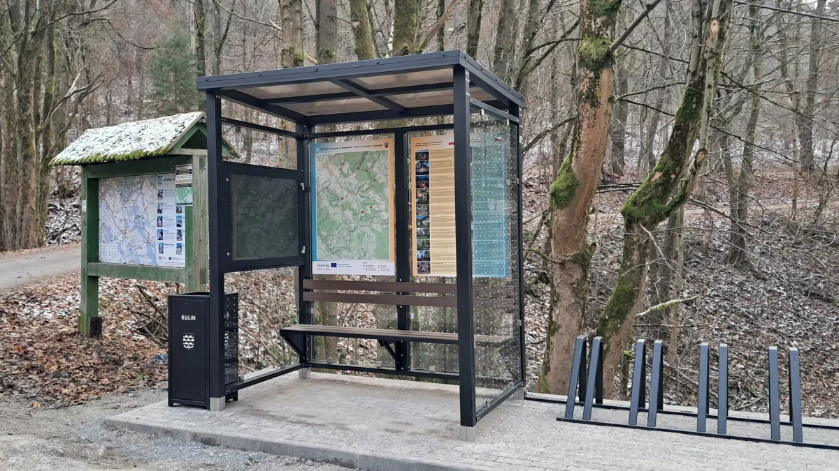 Dodatkowym elementem projektu była modernizacja istniejącej wiaty w Jarkowie, która została wzbogacona o nową planszę mapową i gablotę informacyjną, co znacząco poprawiło jej funkcjonalność i estetykę.
